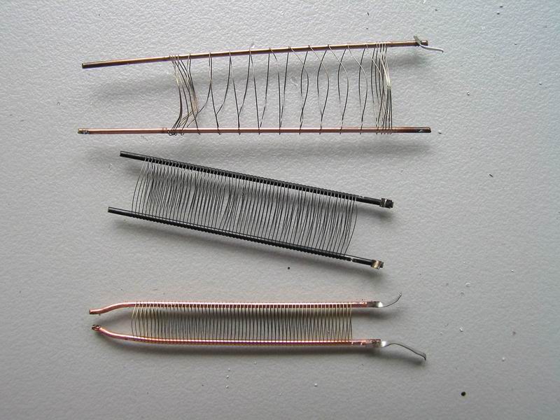 这是颗用于高频放大的通用双三极管6N1。1是吸气剂;2是灯丝阴极和栅极的组合体;3就是阳极。